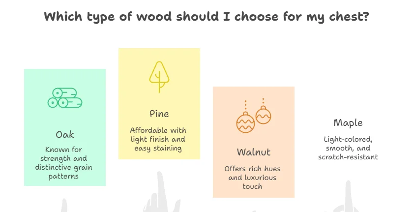 The type of wood you select can greatly influence the look and feel of your chest. Popular options include: