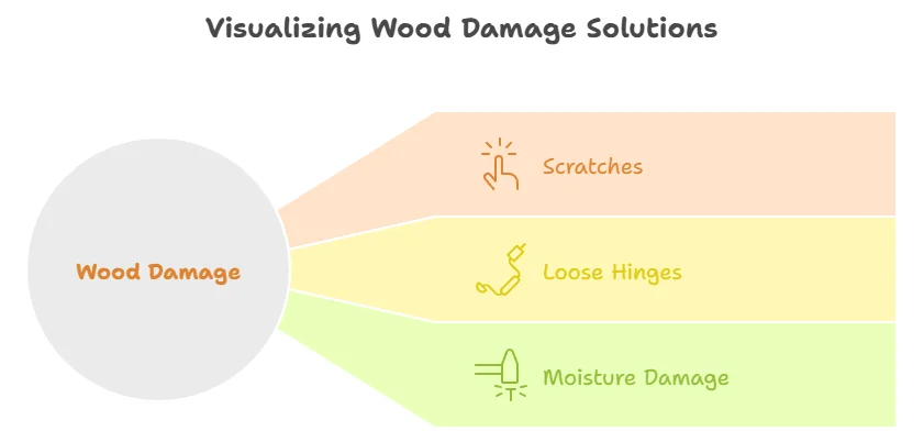 Moisture Damage | Allow the wood to dry and possibly sand down the affected area. |