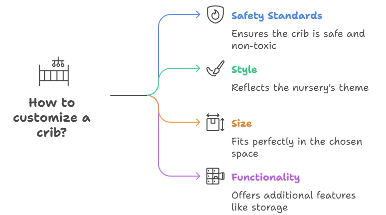 - Size: Measure the space where the crib will go. Customizing the dimensions helps to ensure that the crib fits perfectly in your chosen area.
