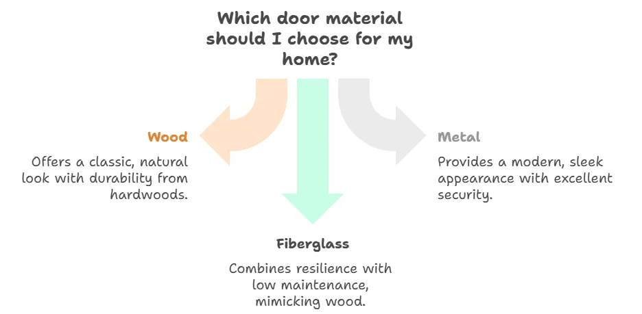 The right materials will not only affect the durability of your door but also its aesthetic appeal. Here are the main materials to consider: