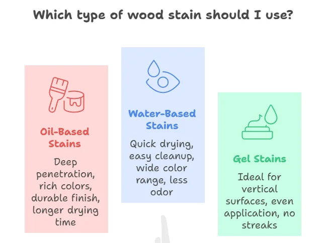 • Water-Based Stains: Quick to dry and easy to clean up, these stains are ideal for indoor furniture. They provide a wide range of colors and a less intense odor.