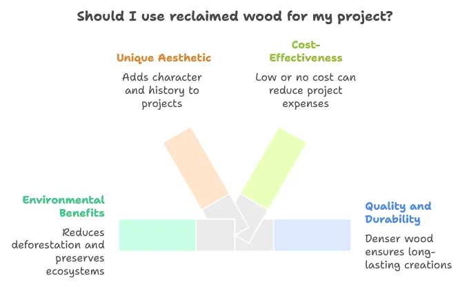 • Unique Aesthetic: Reclaimed wood often has a beautiful patina and history, lending a distinct character to your projects that new wood simply cannot replicate.