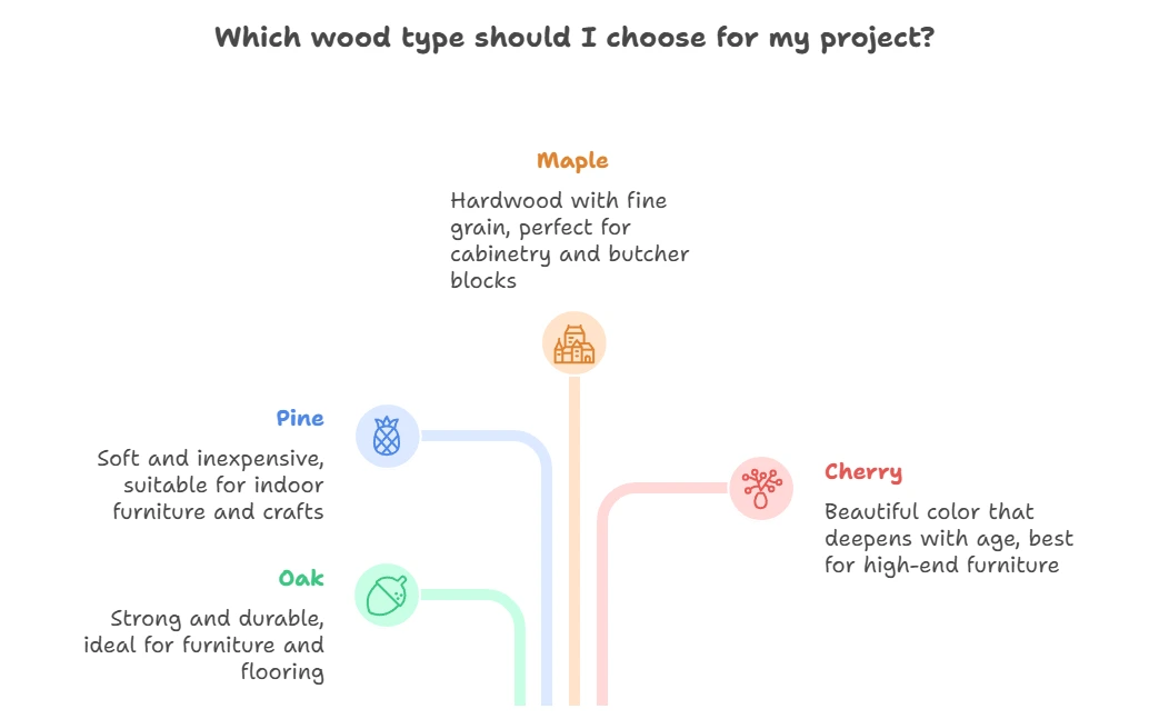 Not all woodworking materials suit every project. Here is a quick guide on popular wood types: