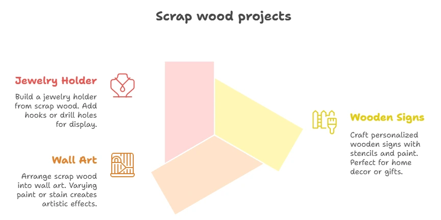 - Jewelry Holder: Use scrap wood to make a jewelry holder. Drill holes or add hooks to display your accessories in style.